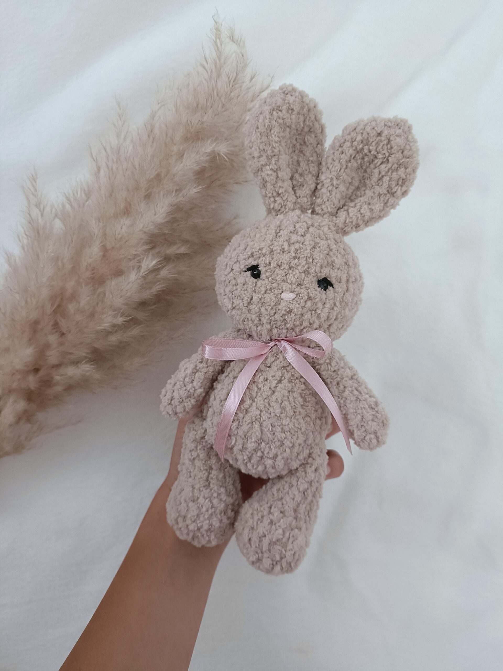 Królik wyróżnia się uroczym wyglądem i starannym wykonaniem, dlatego świetnie sprawdzi się jako dekoracja wnętrza, element kolekcji maskotek lub wyjątkowy prezent handmade.