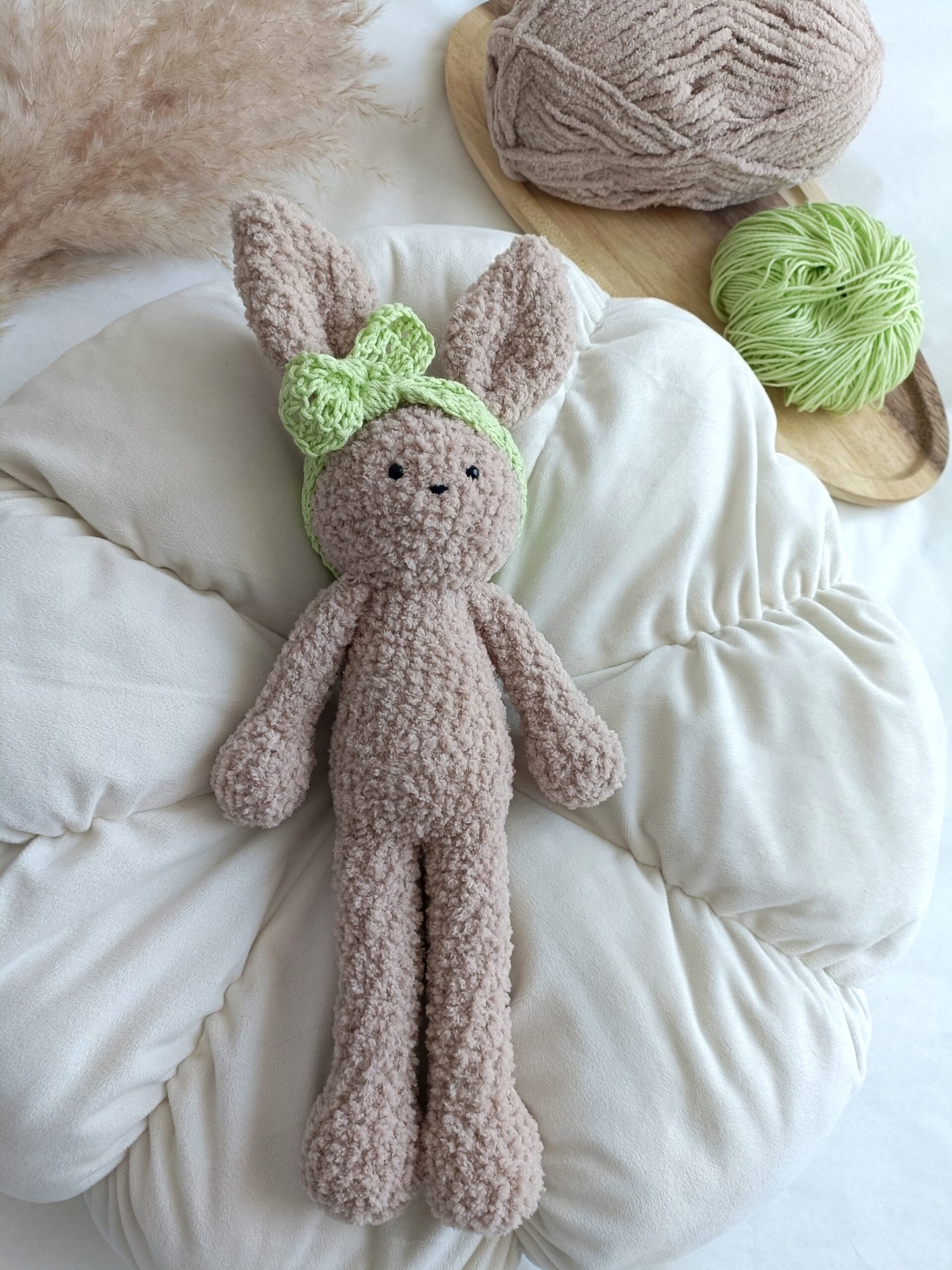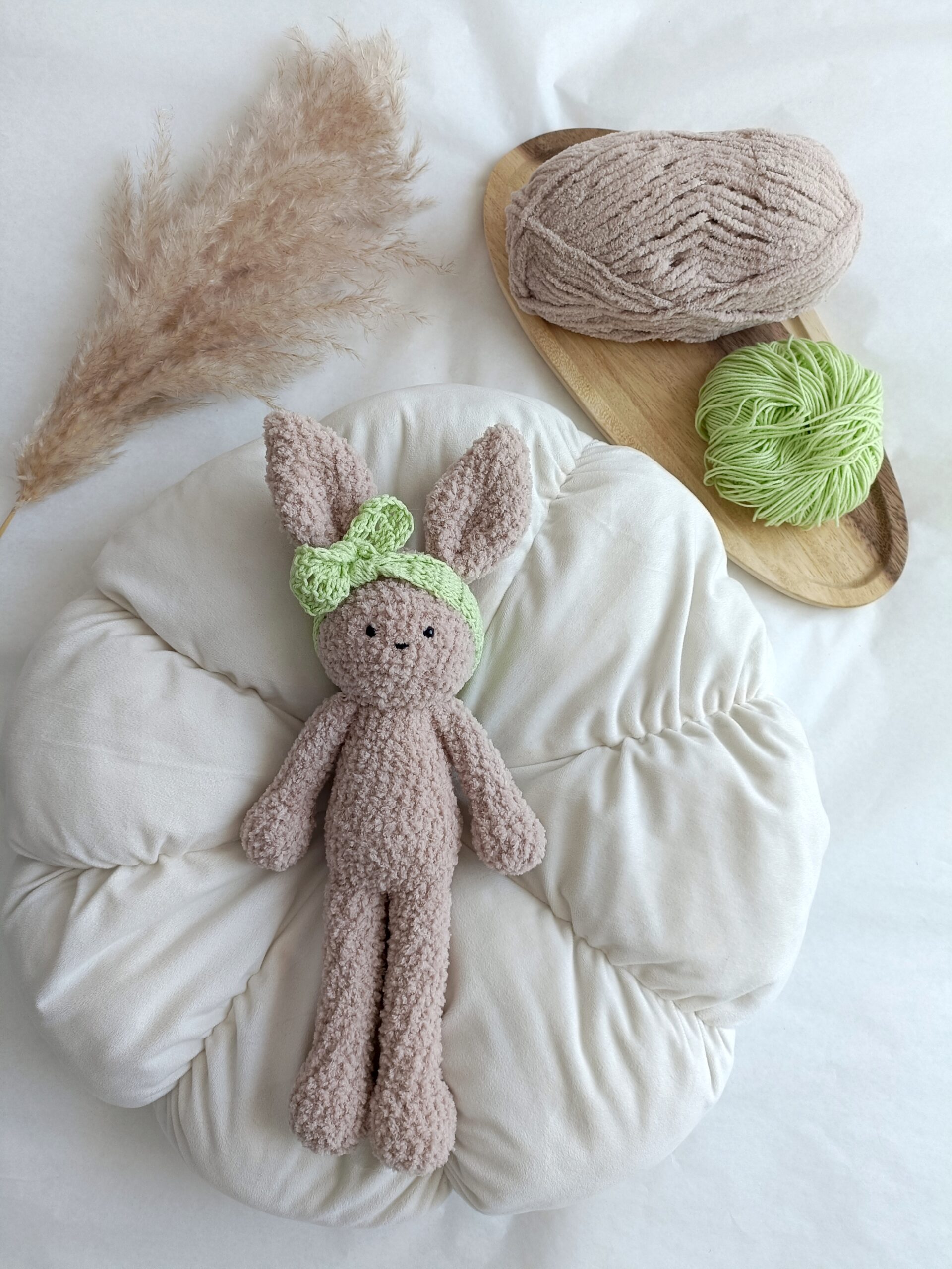 Ten uroczy królik wykonany na szydełku to wyjątkowa maskotka stworzona ręcznie z dbałością o każdy detal. Została wykonana z miękkiej włóczki, która posiada certyfikat OEKO-TEX Standard 100, potwierdzający jakość materiału.