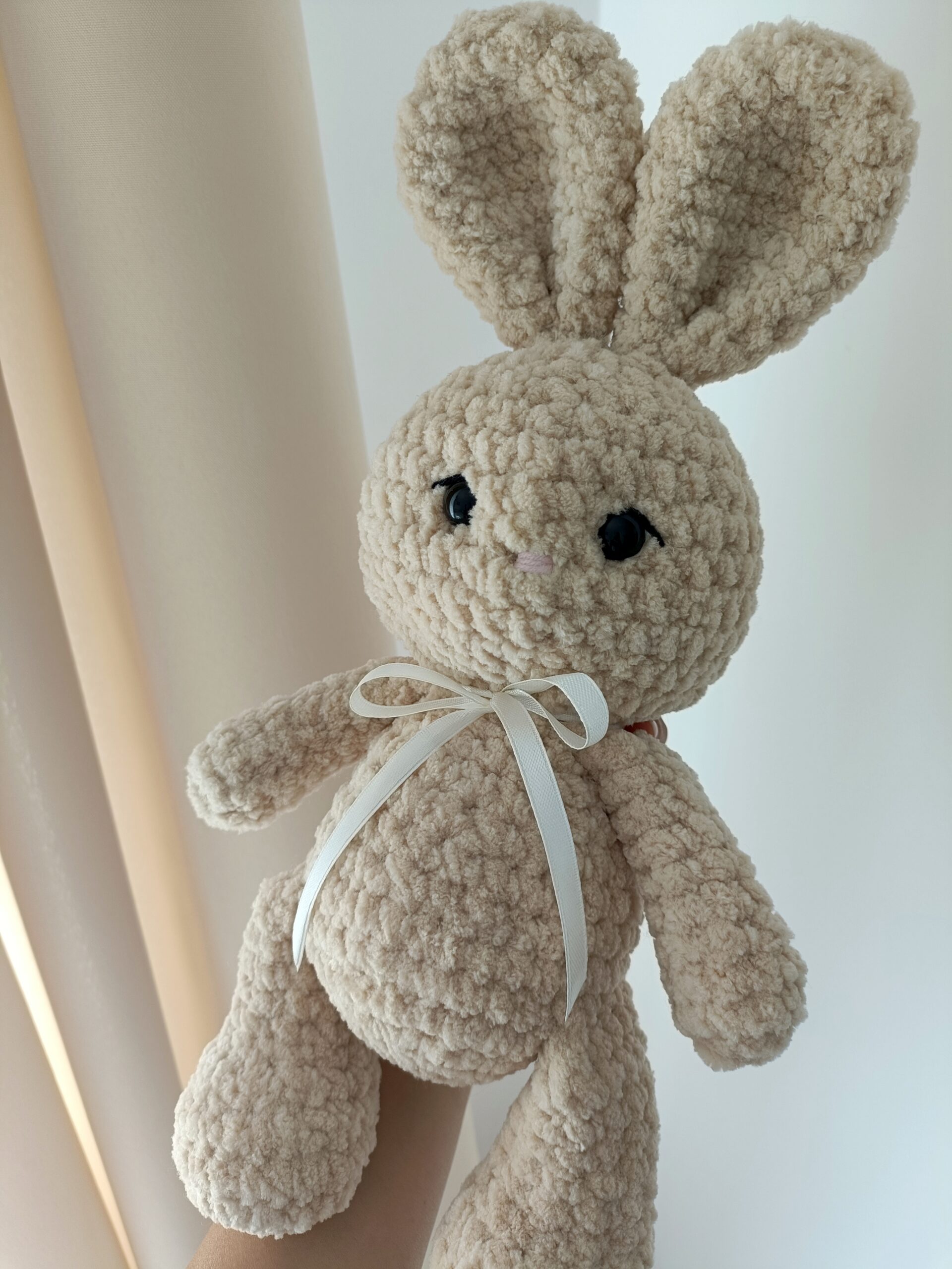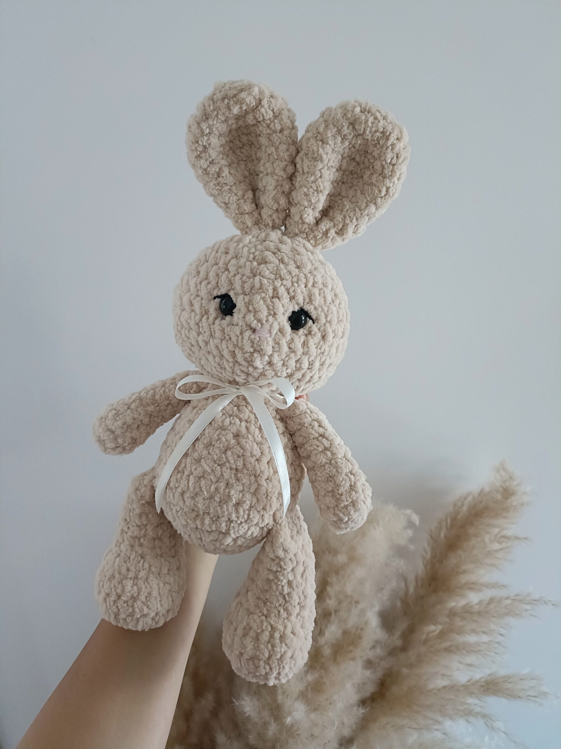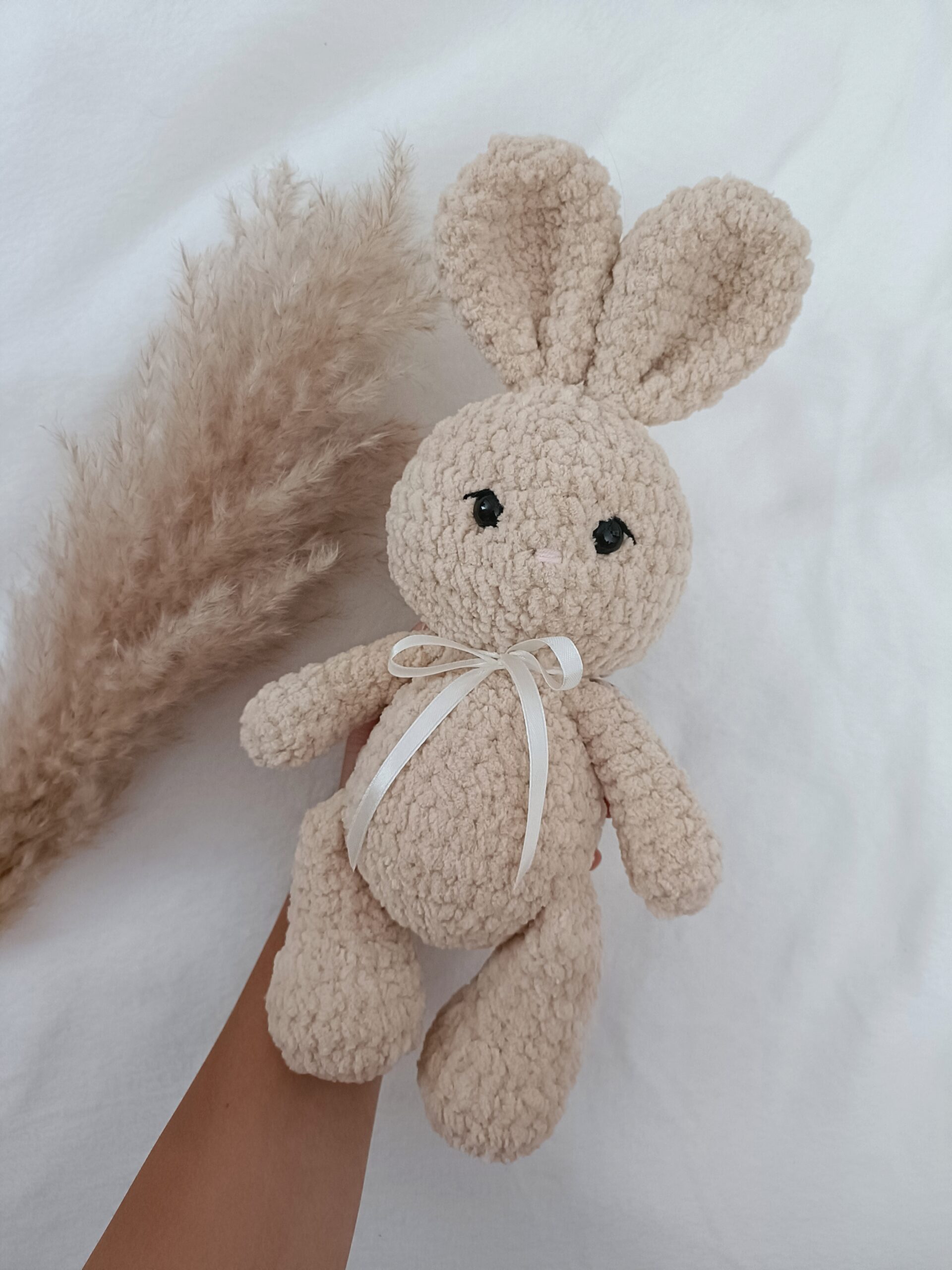 Królik na szydełku – maskotka handmade z pluszowej włóczki