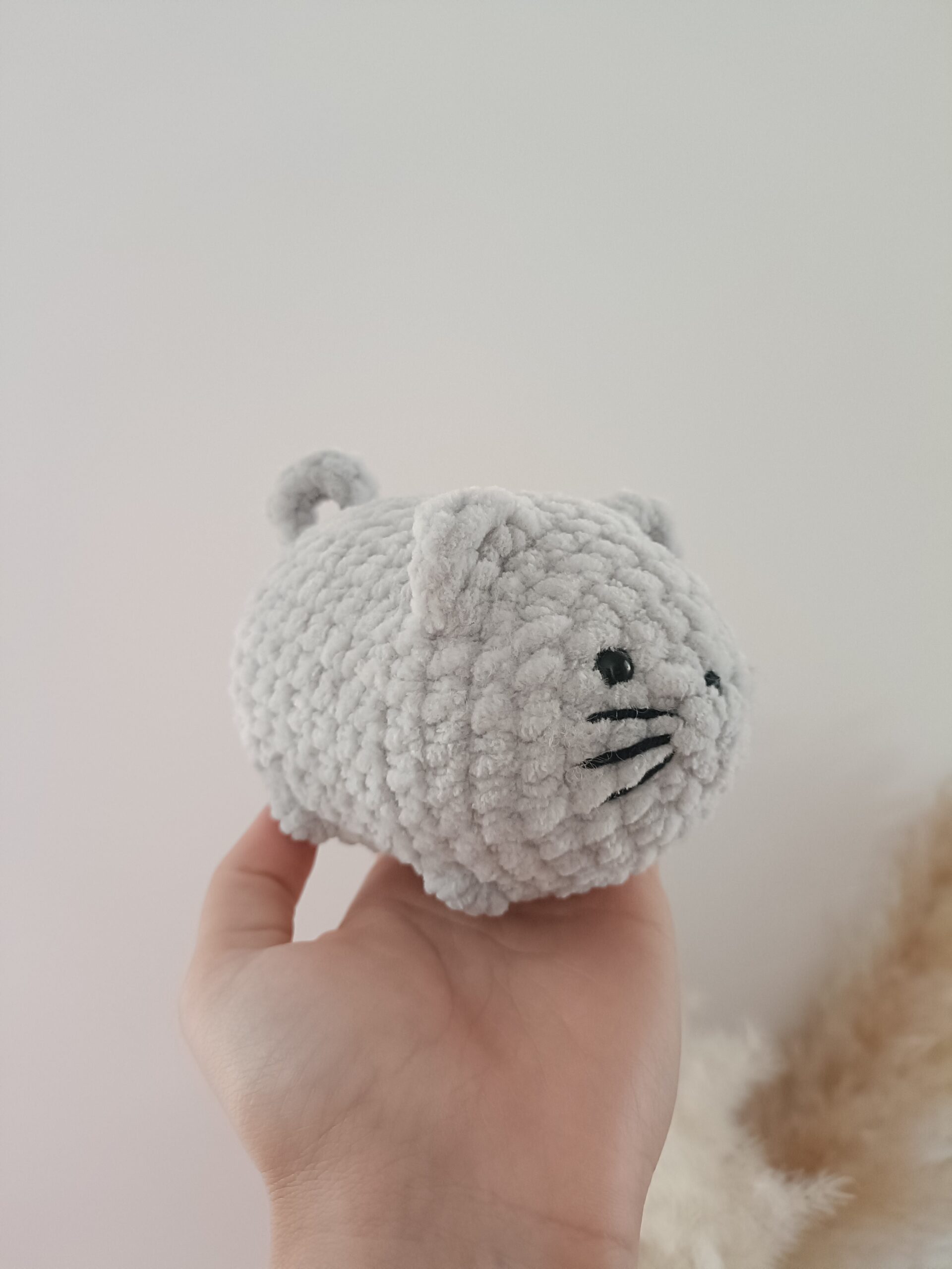 Szydełkowy kotek to wyjątkowa maskotka stworzona ręcznie z dbałością o każdy detal. Została wykonana z miękkiej pluszowej włóczki, która posiada certyfikat OEKO-TEX Standard 100, potwierdzający jakość materiału.