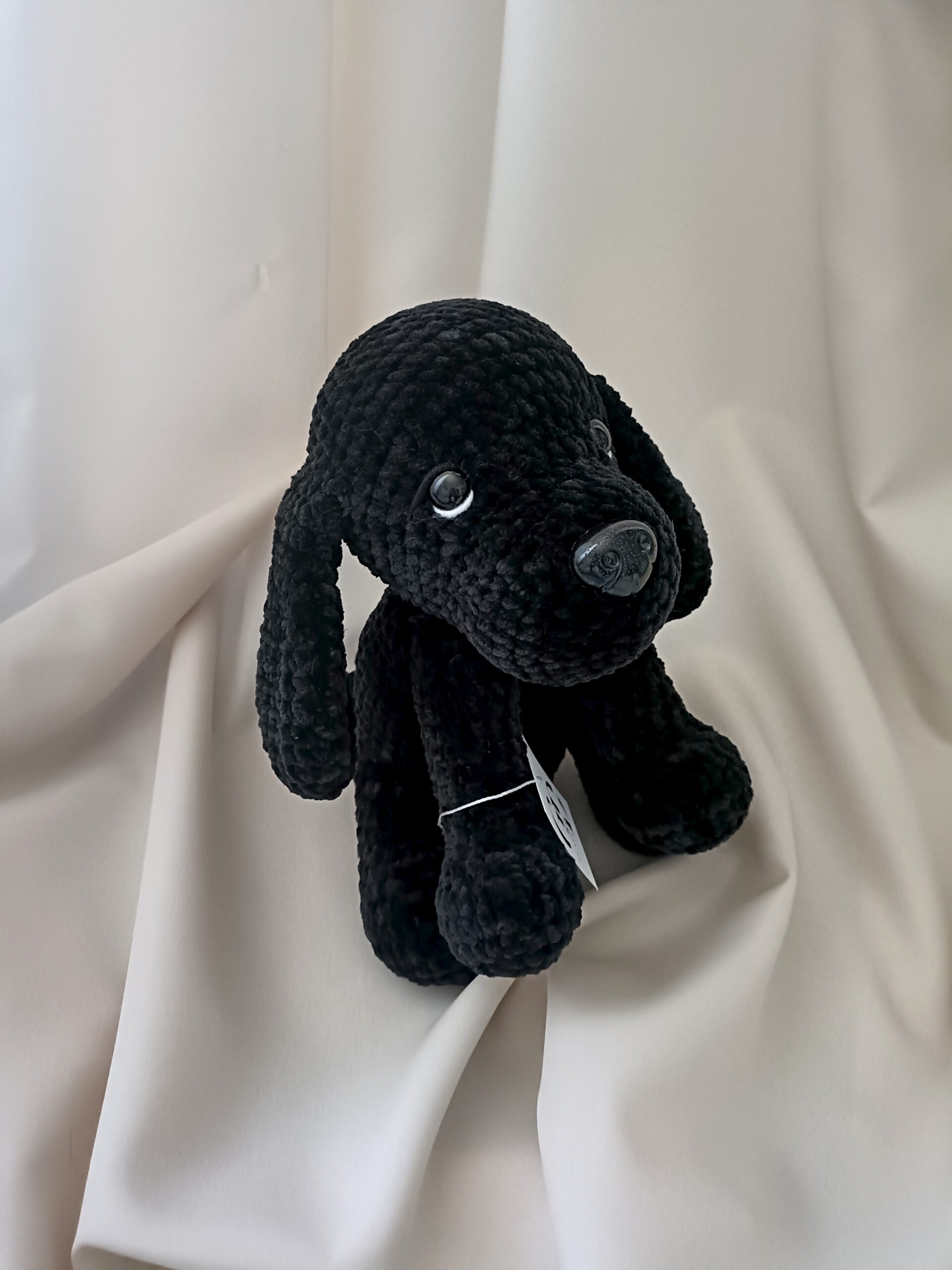 Maskotka piesek wykonana na szydełku z miękkiej pluszowej włóczki posiadającej certyfikat OEKO-TEX Standard 100. Wypełniona antyalergiczną kulką silikonową. Produkt handmade.