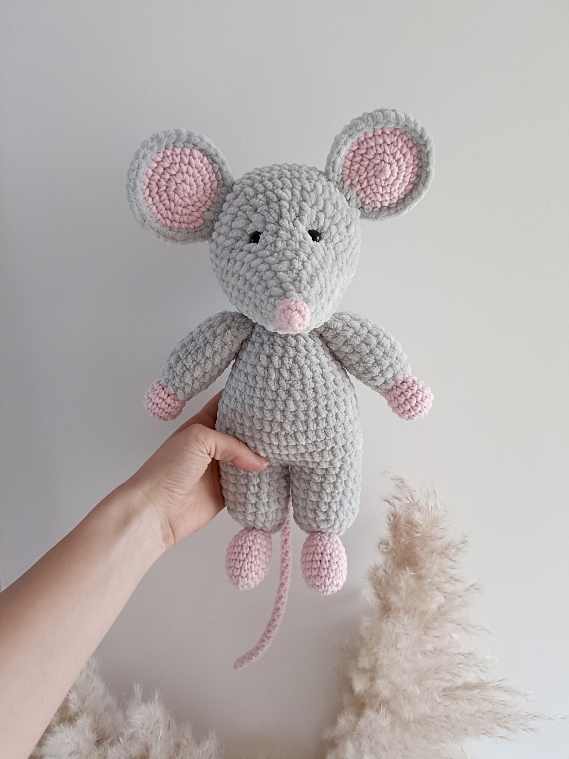 Szydełkowy szczur – maskotka handmade z pluszowej włóczki
