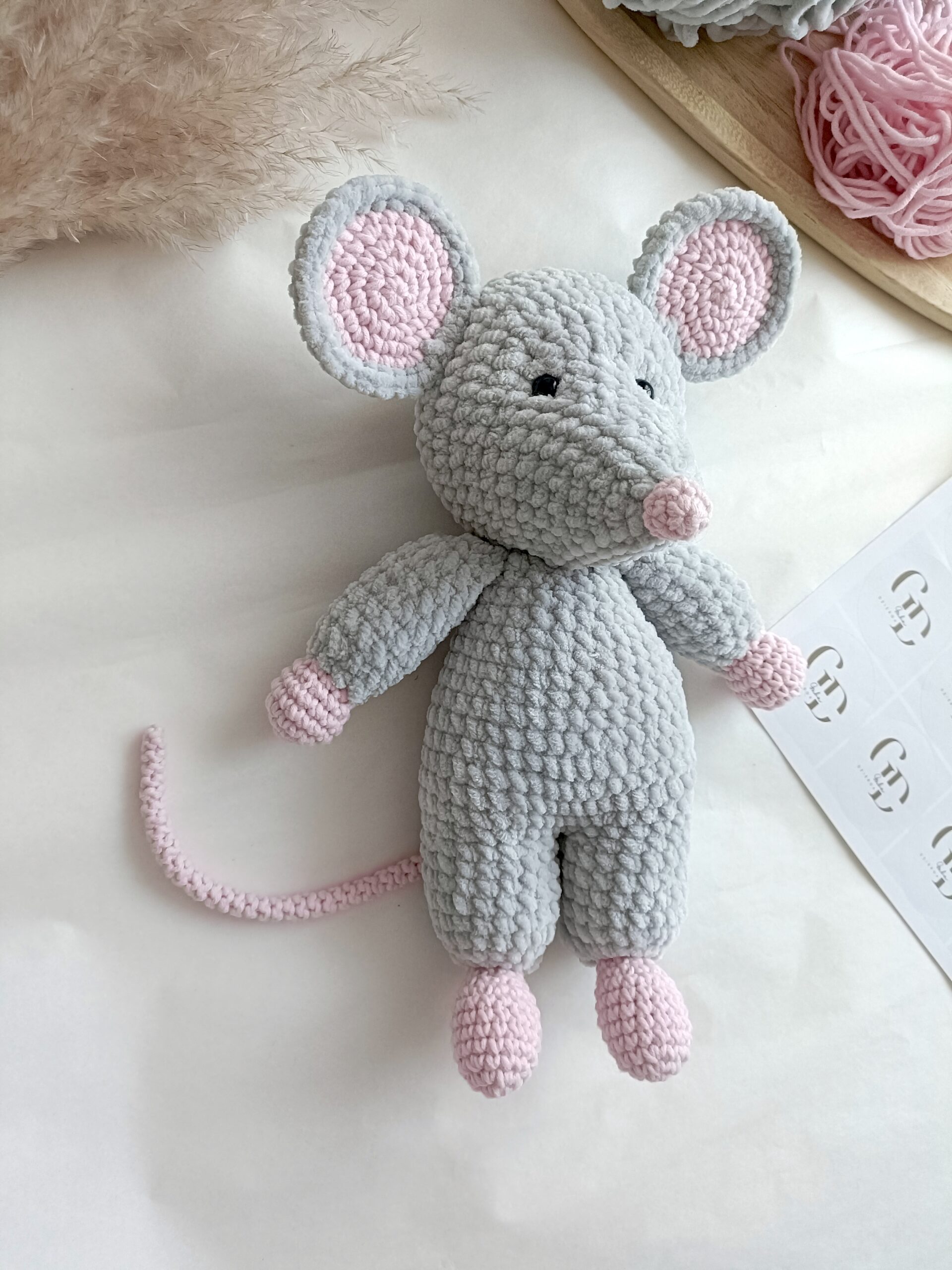 Ten uroczy szczur wykonany na szydełku to wyjątkowa maskotka stworzona ręcznie z dbałością o każdy detal. Została wykonana z miękkiej pluszowej włóczki, która posiada certyfikat OEKO-TEX Standard 100, potwierdzający jakość materiału.