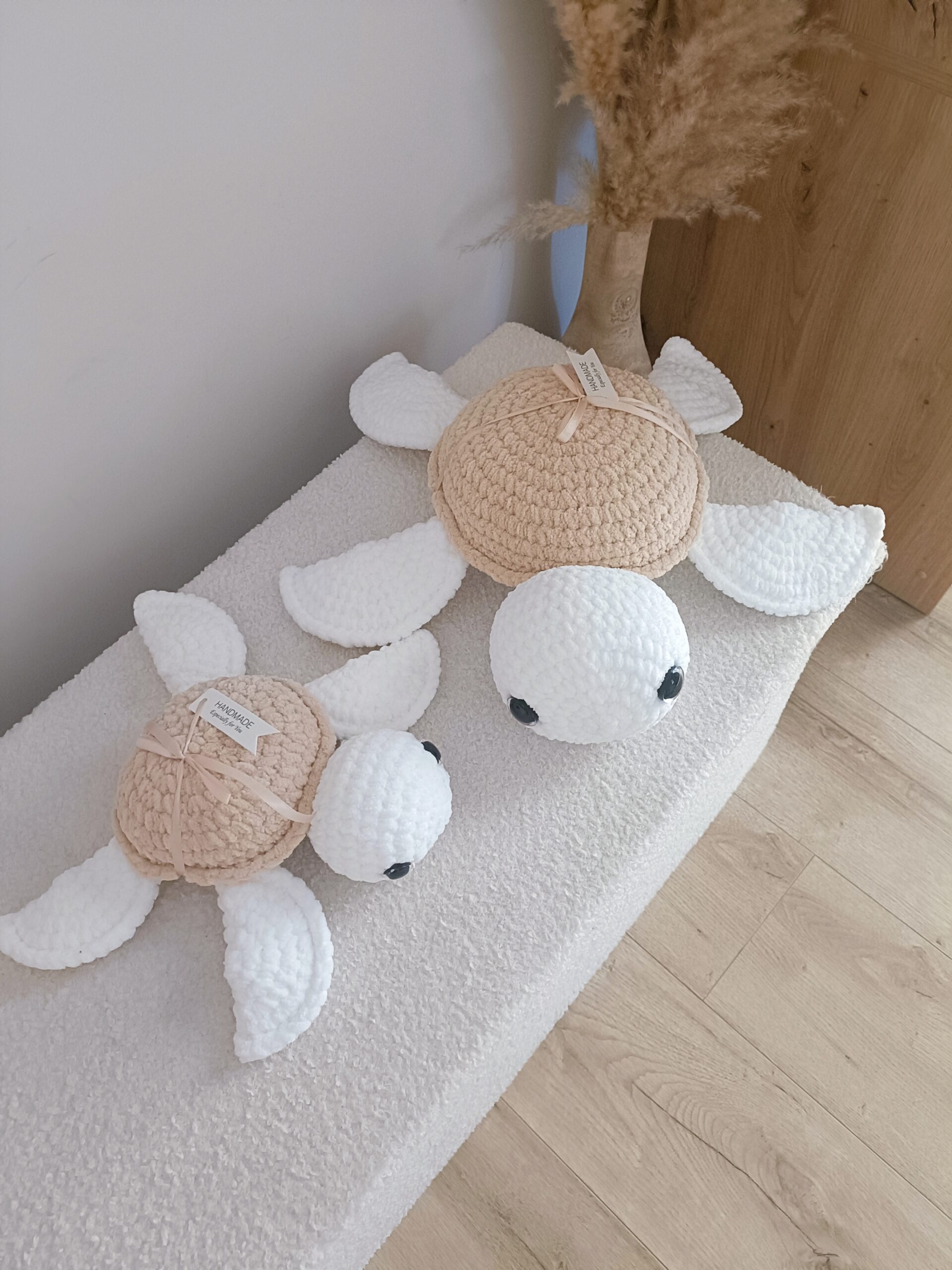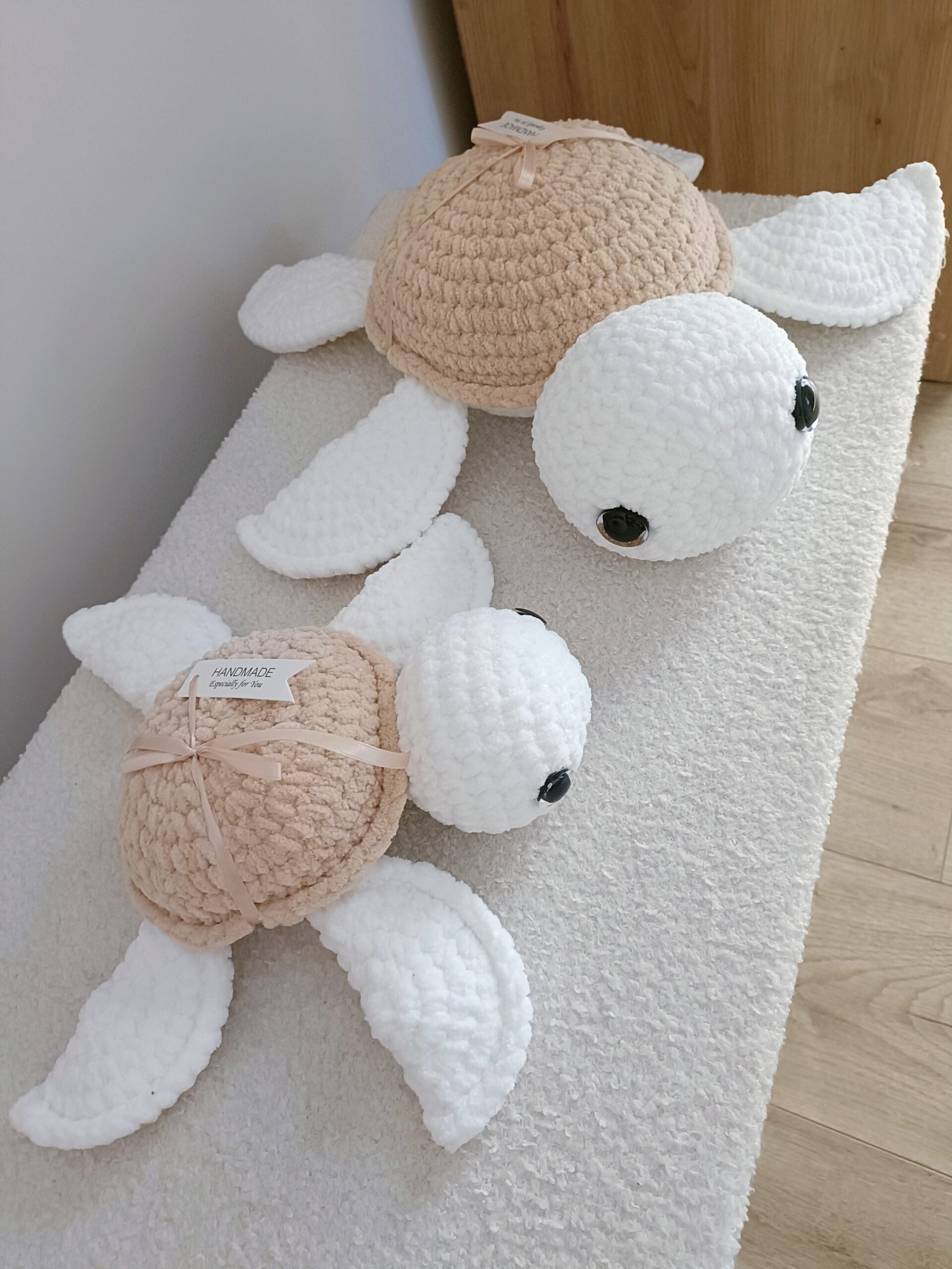 Maskotka żółw wykonana na szydełku z miękkiej pluszowej włóczki posiadającej certyfikat OEKO-TEX Standard 100. Wypełniona antyalergiczną kulką silikonową. Wyjątkowe rękodzieło.