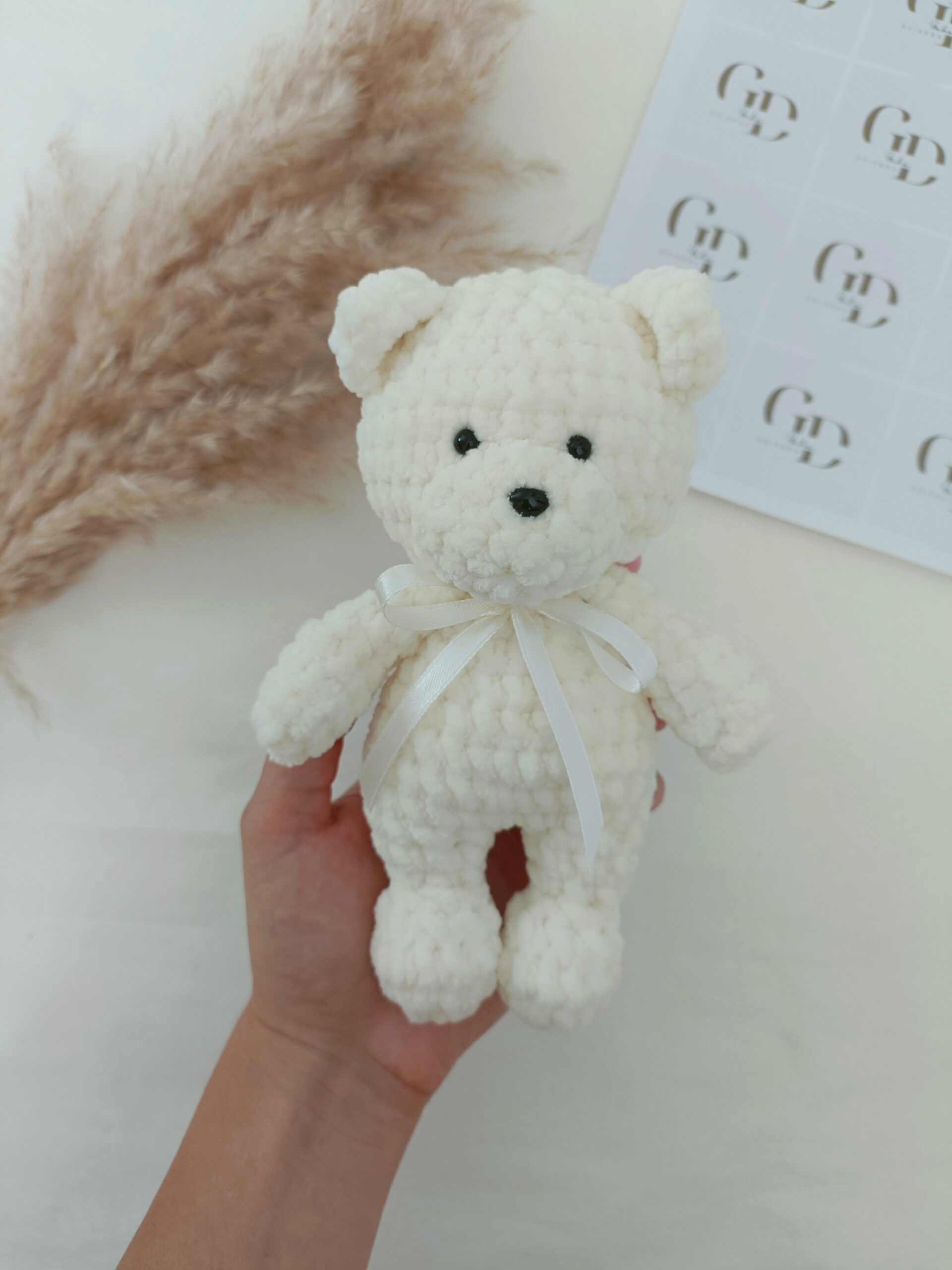 Ten uroczy miś wykonany na szydełku to wyjątkowa maskotka stworzona ręcznie z dbałością o każdy detal. Została wykonana z miękkiej pluszowej włóczki, która posiada certyfikat OEKO-TEX Standard 100, potwierdzający jakość materiału.