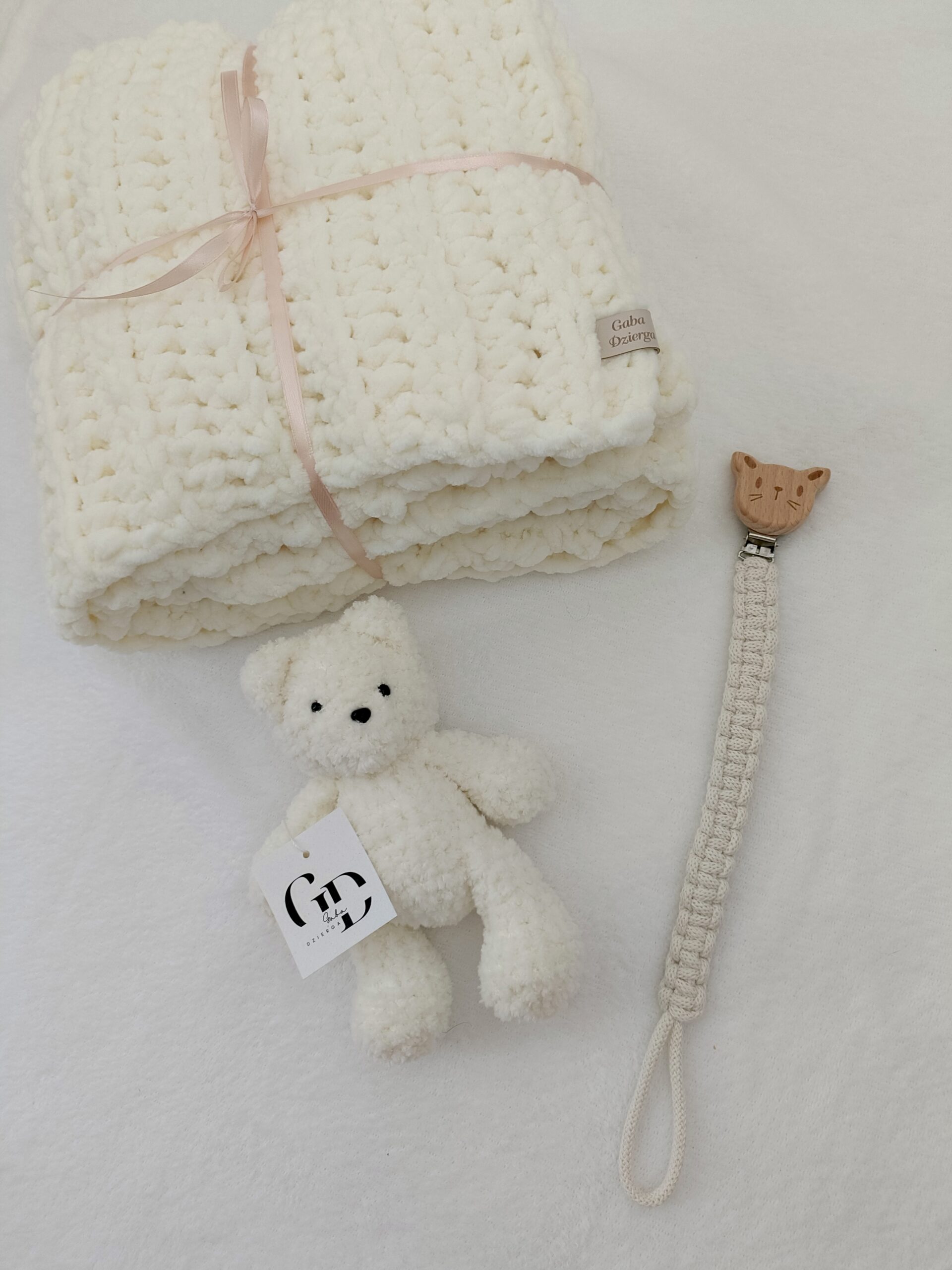 W skład zestawu wchodzą trzy starannie wykonane produkty z kolekcji Boucle Bear: