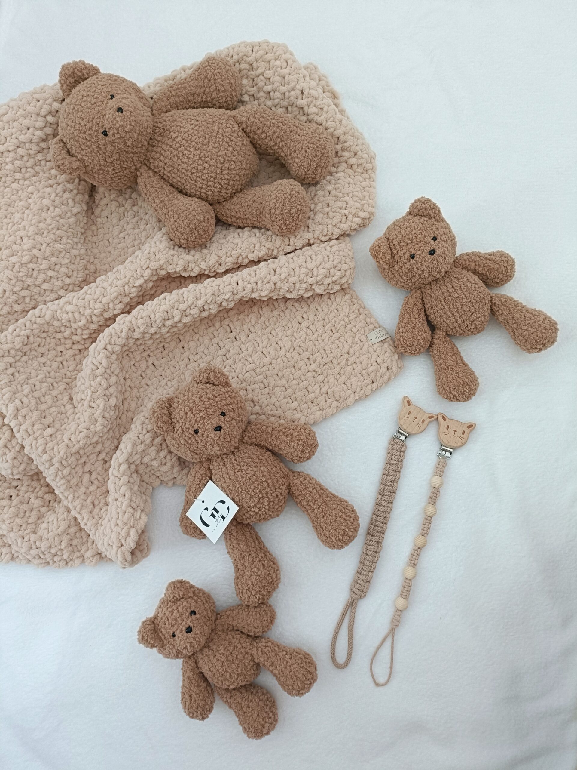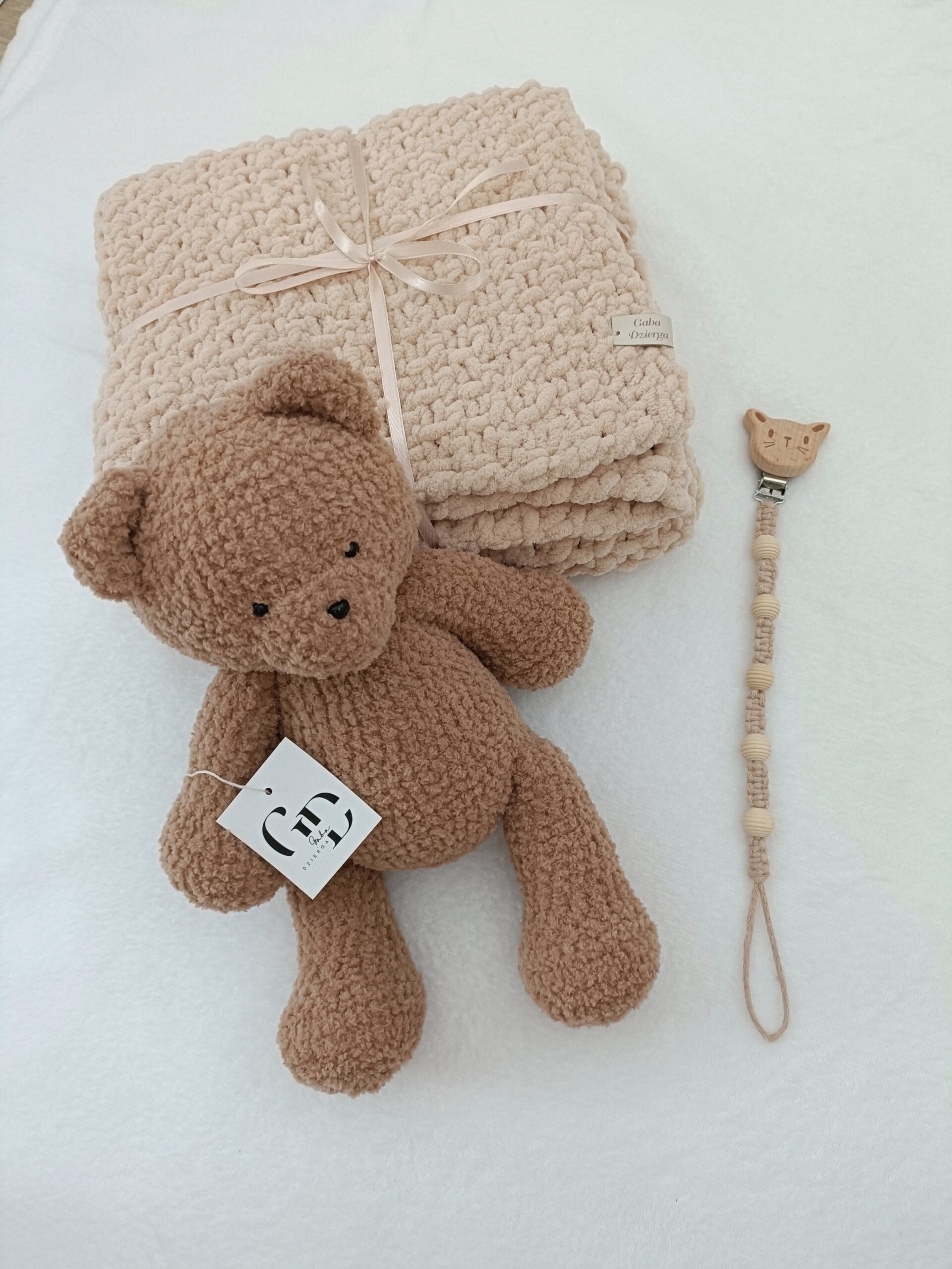 W skład zestawu wchodzą trzy starannie wykonane produkty z kolekcji Boucle Bear: