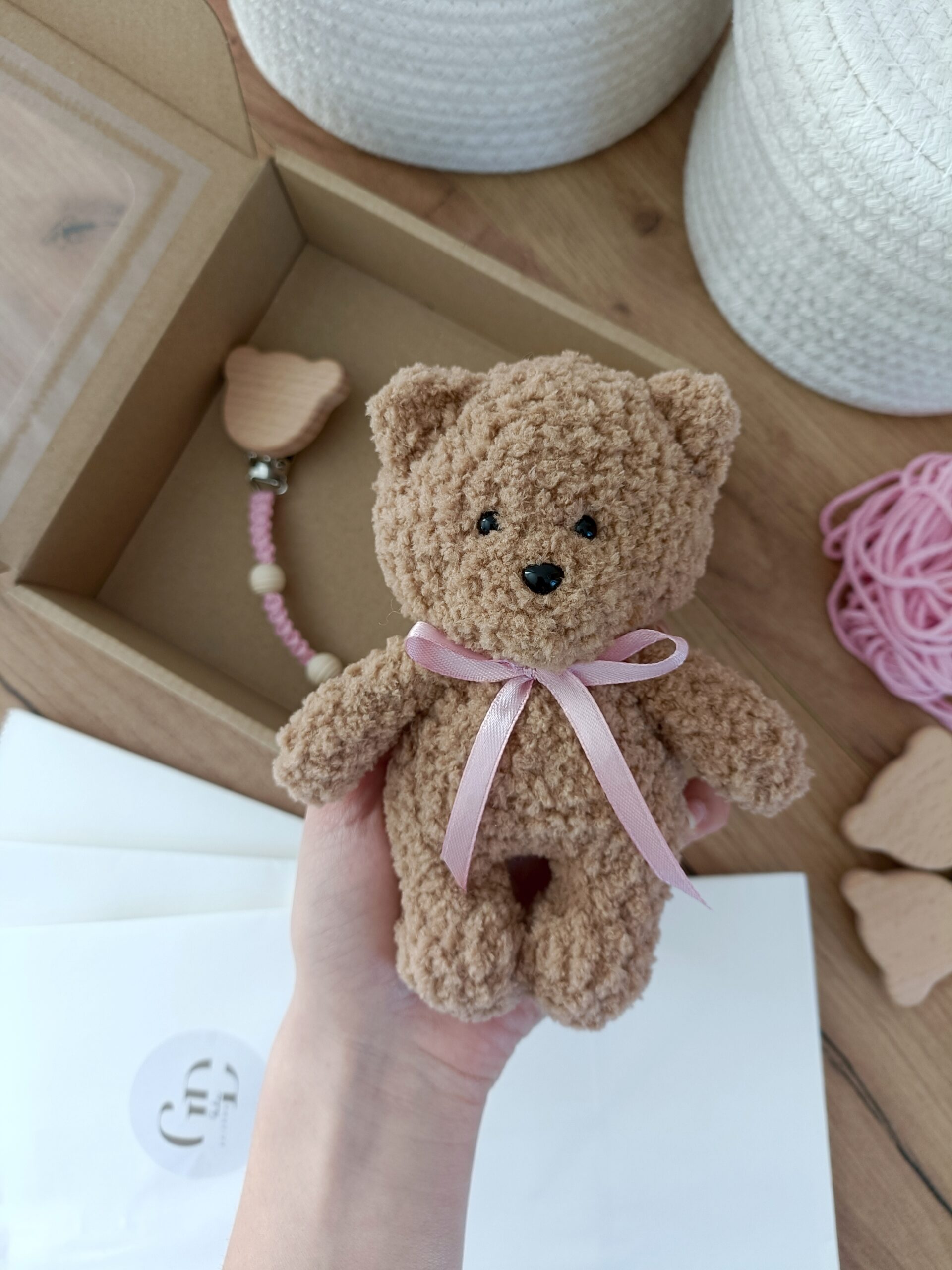 - Miś wykonany na szydełku z wyjątkowo milutkiej włóczki posiadającej certyfikat OEKO-TEX Standard 100. Wypełniony antyalergiczną kulką silikonową. Mierzy ok. 14 cm. Kolor brązowy nr 199.